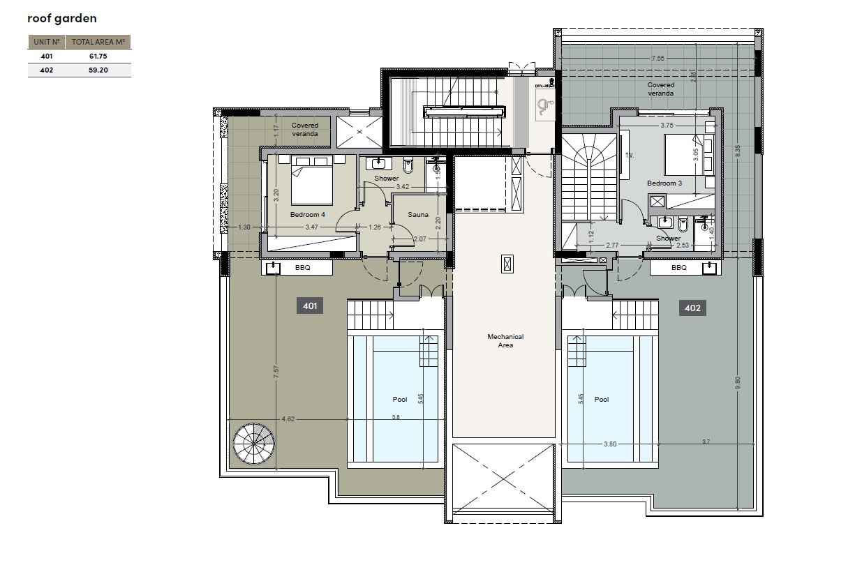 • Penthouses with private pools and roof terraces